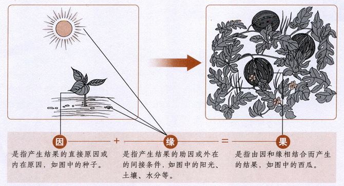 一切法的生灭既由因缘,那么一切法存在或坏灭也就有因可循、有理可据。凡果必有因,怎样的因便产生怎样的果,因果必相应。