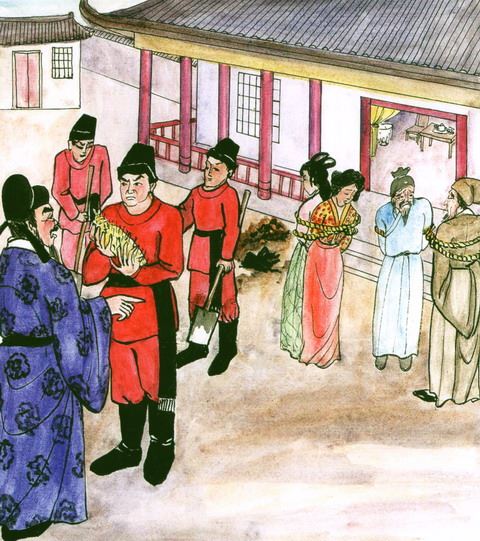 唐朝时,王屋县衙主簿公孙绰,刚到县衙上任就突然地暴毙了。有一天,他就托梦给县令说:“我有怨,恳求长官为我申冤,洗刷我的冤情啊!我的命,还不到该死的时候,但是被我的奴婢,利用埋蛊厌人的妖法所害,以便利他们盗窃我家的财产。我的老家在河阴,长官倘若能秘密地挑选几位精明强干的部下,拿了通缉令前往河阴捉人,必定一个都不会漏网。我家堂前的屋檐,从东边算起,第七个瓦垄下面,埋有我的雕像,是用梧桐木雕的,上面还钉有布,经过一段时间,现在已经变质了。”第二天,县令果然就挑选了几位精明强干的部属,拿了通缉令,前往河阴县捉人,并且还写了一份公文,通知照会河阴县的县令。于是将公孙绰家的奴婢全部抓起来,并在屋子的堂檐下,搜出了长约一尺的木头人,上面顶满了钉子。县令于是将实情报告知府,将奴婢全部处以极刑。