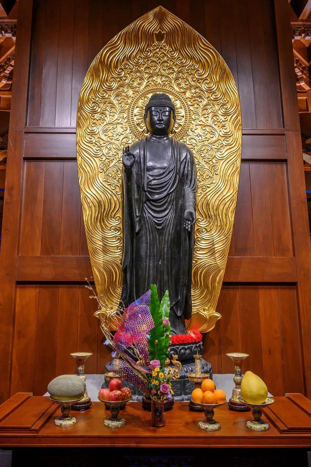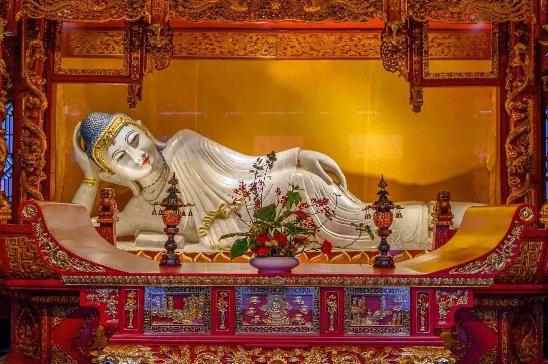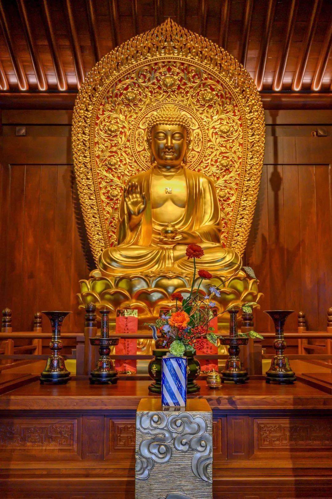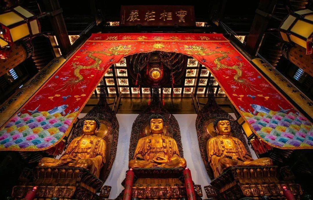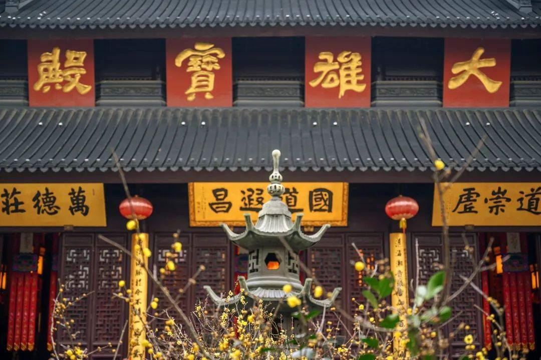 疏影横斜水清浅。这一切都在大雄宝殿正中间释迦牟尼佛的视线中。世尊慈悲含笑,遍视入寺礼佛的大众,倾听大家在佛前许下的心愿。大雄宝殿内的释迦牟尼佛旁,阿弥陀佛和药师琉璃光如来也一同护佑着来往的香客。