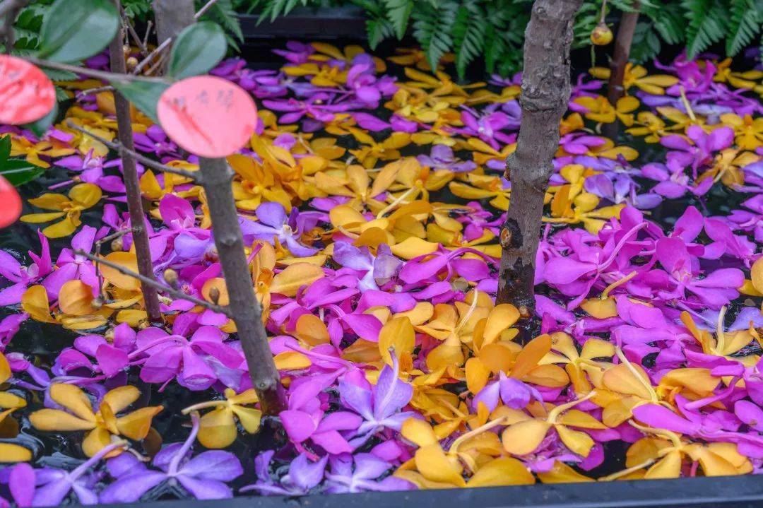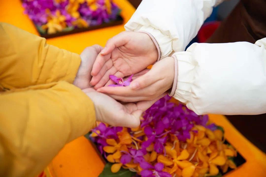 本次供花方式有两种。于早晨吉时,在万年宝鼎前,有序领取供花,亲手摆放于汉白玉地带的供花作品中。腊八当天共提供2000朵千代兰,每人限领一朵,领完即止。