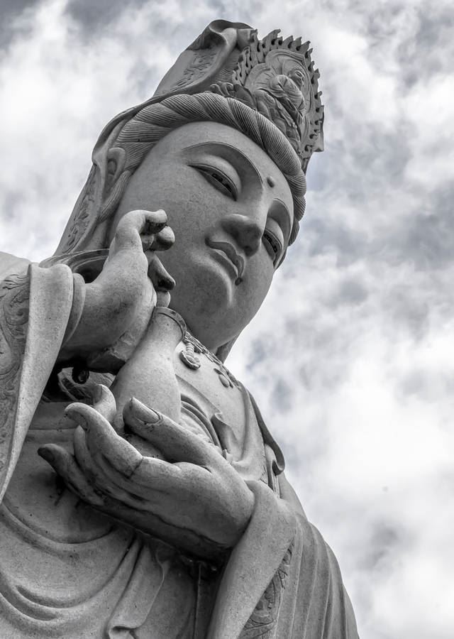 慈悲为怀的观音菩萨是人们心中至高的信仰,世间的善男信女每逢重要的日子;总会不约而同地前往寺庙敬香礼佛。观音菩萨又被成为观世音菩萨,不仅与文殊菩萨、普贤菩萨并称为“三大士”;还与阿弥陀佛、大势至菩萨并称为“西方三圣”。然而,人们对观音菩萨像的认知已经不能局限于在于佛教文化的种种描述中,所以,后来人们运用雕刻艺术或者绘画艺术;将观音菩萨的形象更加具象化。其中石雕观音属于雕刻艺术中十分常见的一种类型,按照所选用的石材不同,主要分为青石观音雕塑、白麻石观音雕塑等等。人们将容貌和姿仪端庄宁静的石雕观音菩萨像,摆放在寺庙中进行供奉,以护佑他人。经常去寺庙观佛、礼佛的信众,相信都十分熟悉石雕观音菩萨的形象,细心的朋友一定会发现,石雕观音菩萨的头上总是披着一块像纱巾一样的布。也许有人会好奇,石雕观音菩萨头上为什么要披着布呢?人们这样雕刻制作又有什么用意呢?