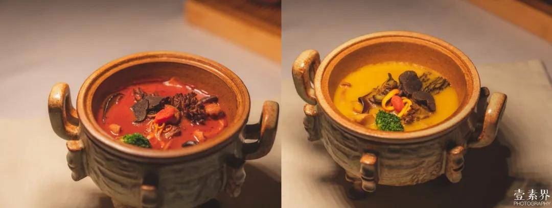 素版佛跳墙,也是叶叶菩提的一道人气招牌菜品。选用了龙爪菌、羊肚菌、黑松露片、鸡油菌等营养丰富的菌类食材,通过炸卤蒸三道工序,精心烹饪4个多小时而成。