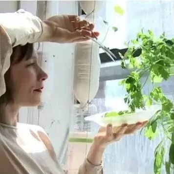 在自家小窗户上,Britta用钓鱼线垂直串起几个水瓶,装上营养液和生菜、西红柿,用水泵把水从底部抽到顶部,然后顺着瓶子滴灌而下——就这样,她自创了一套无土栽培系统,第一座窗台农场诞生了!