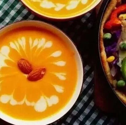 原料:南瓜500g,嫩薑10g,水各500ml,橄欖油10ml,糖適量