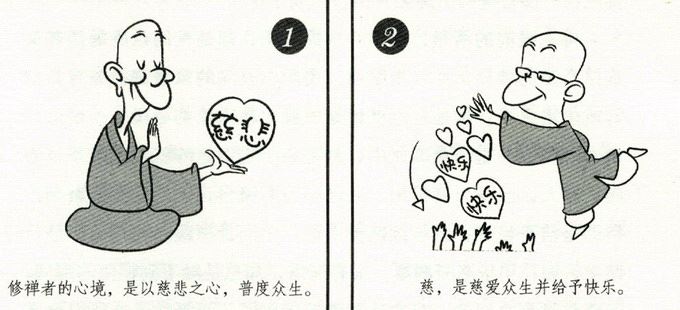 修禅者的心境,是以慈悲之心,普度众生。 慈,是慈爱众生并给予快乐。