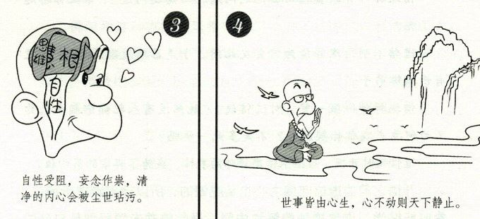 自性受阻,妄念作崇,清净的内心会被尘世玷污。 世事皆由心生,心不动则天下静止。
