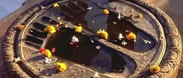 于是在大方石上留下我们眼前这双足迹。这和见到佛是一样的。他脚上的纹饰更让人相信佛有不可思议的神通智慧。佛的脚趾上的“卐”字纹象征火和光明;双鱼象征解脱;宝瓶象征智慧;海螺象征布道;三钴象征护法,足掌心还有千辐轮相。这些都是佛的功德所感,自然而有的。