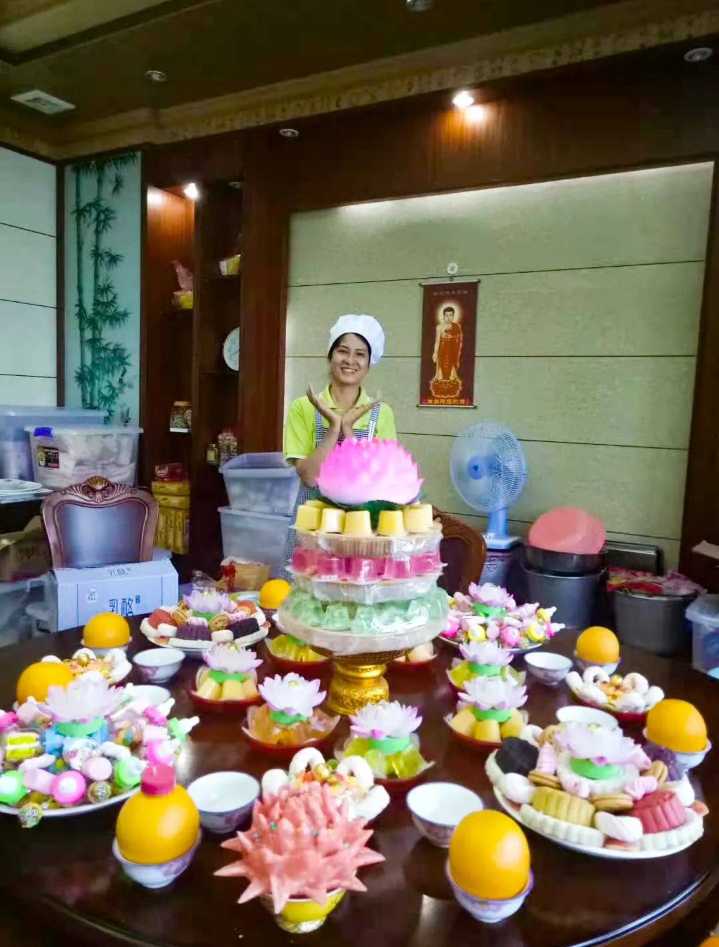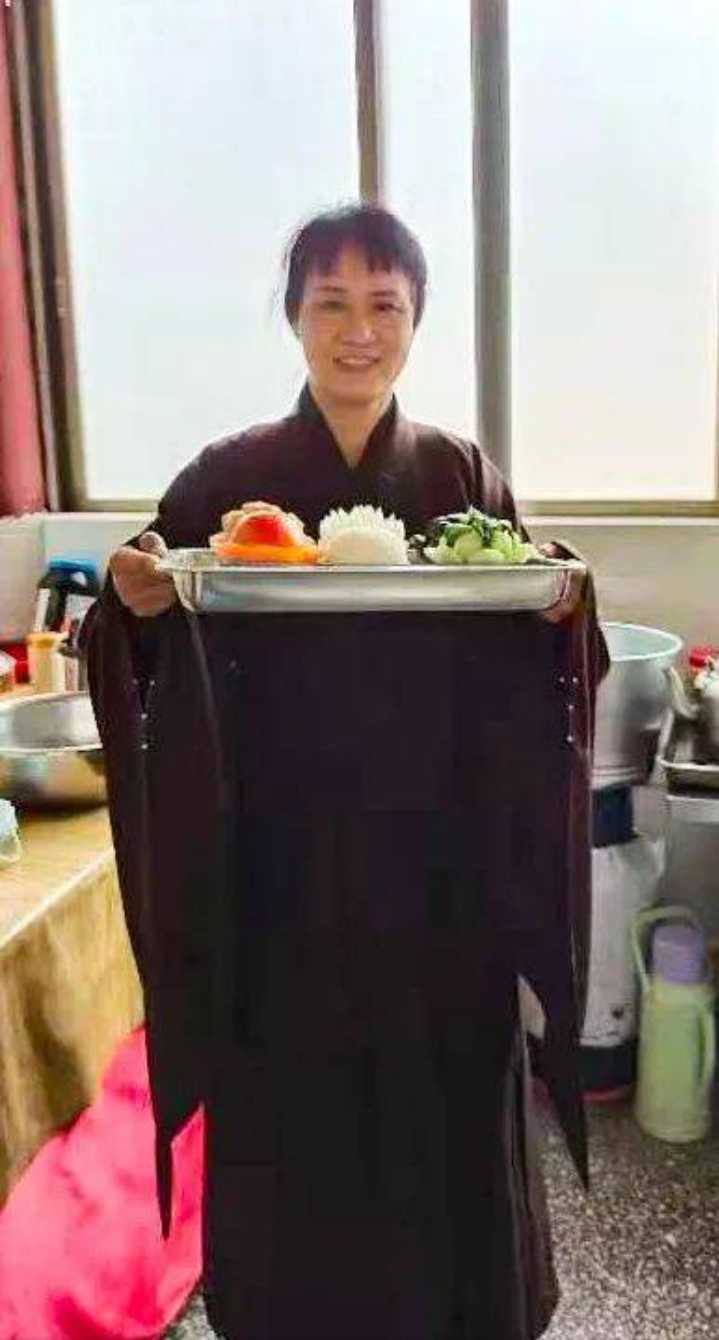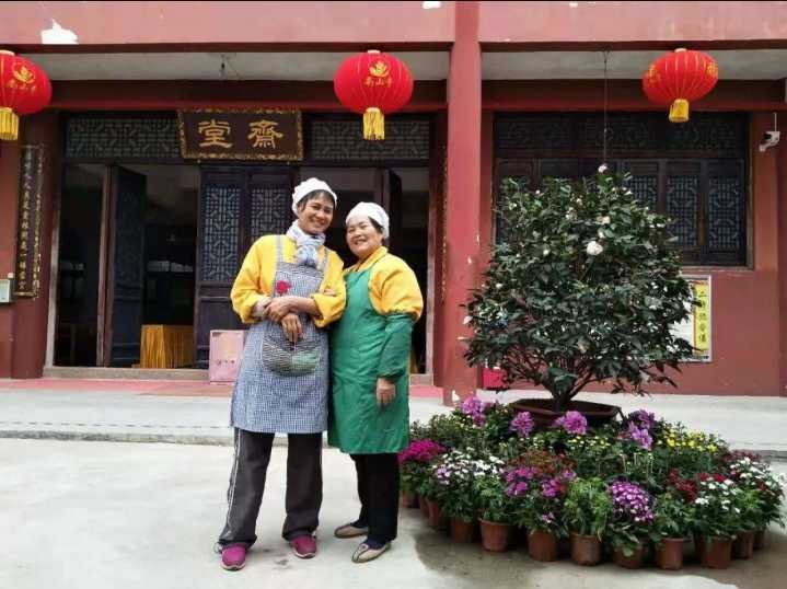 有佛法就有方法,有方法就有希望!幸運的笑笑得到佛菩薩的眷顧,遇上了一位佛弟子,那位佛弟子深知這是她的業障病,於是2009年就帶她來南山寺做義工,讓她每天勤奮幹活消業障,她也很聽話地在齋堂剝菜、做供菜、搞衛生,早上做完供菜,就去照顧病人、腦癱兒、老人家。她說:「不做不行,不做命都沒了,做了就可以撿條命回來。」幹活的時候,她很少說話,都是念佛多,默默地服務十方,還發願生生世世不再吃眾生肉,慢慢地業消智朗,障盡福崇,她就從80幾斤漲到了110多斤,身體也完全康復了。