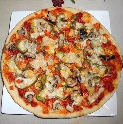 制作披萨前,最好提前一天做好的准备工作:制作素奶酪和披萨酱。将豆浆和糯米粉以1.5:1的比例用打蛋器搅拌均匀,放在小火上加热,同时不断搅拌,直至呈浓稠糊状关火,趁热加入少量植物油、盐、白醋。(尽量用复层底的锅,受热均匀不易糊掉)炒锅加植物油烧热,放入西红柿丁煸炒,再加白糖、盐、黑胡椒粉、罗勒叶碎,再熬煮大约10分钟,中间注意翻炒,以免糊底。盛出后晾凉,入冰箱冷藏。(注意加盐略多一点,披萨酱要尝起来略偏咸,因为整个披萨咸味的来源主要来自酱。) 准备面团:将适量发酵粉放入冷水搅拌调匀,静置几分钟。面粉里放入少许白糖和盐,一边搅拌面粉,一边将发酵粉水加入,和成略软的面团,并将面团按分成适合的大小,每个面团将做成一个披萨。(盐糖放一点就可以,放盐目的是让面团更筋道;加入糖和盐也可使披萨饼的味道更富有层次)准备蔬菜:胡萝卜、玉米粒、豌豆、蘑菇、香菇洗净后用开水焯一下,切块。青椒洗净切丝。铺放蔬菜,一般按照从大到小的顺序铺放较方便,如:青椒条、蘑菇片和香菇片、胡萝卜粒和玉米粒。将披萨盘放入已经预热的230℃的烤箱中层。烘焙15分钟后取出,将素奶酪用勺子再次涂抹均匀,再烤5分钟。披萨完成,切分、开动。素食心得:悠幽,女,某医学院教师,素食多年。开始吃素原因是因为担心食品安全问题,尤其是肉食经常出现各种各样的问题,如毒猪肉啊、禽流感、鱼塘里的激素、鸡肉里的抗生素等等。后来发现吃素后不容易有昏沉的感觉,脸上也不容易出痘痘了,抵抗力也增强了。不大容易感冒,即使感冒了,也比较容易恢复。并且素食又环保,还能保护动物,希望大家也能加入到素食的队伍中来。