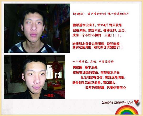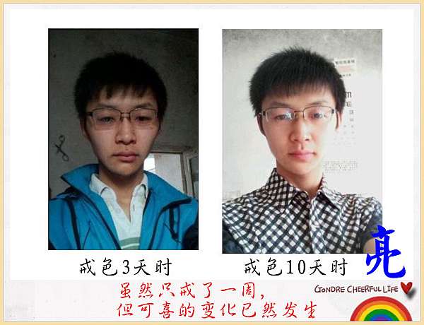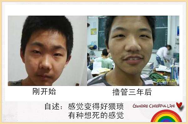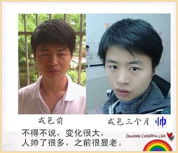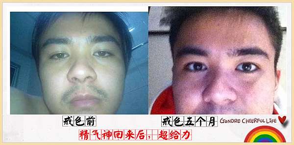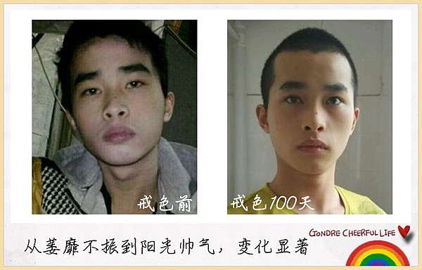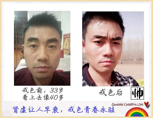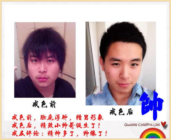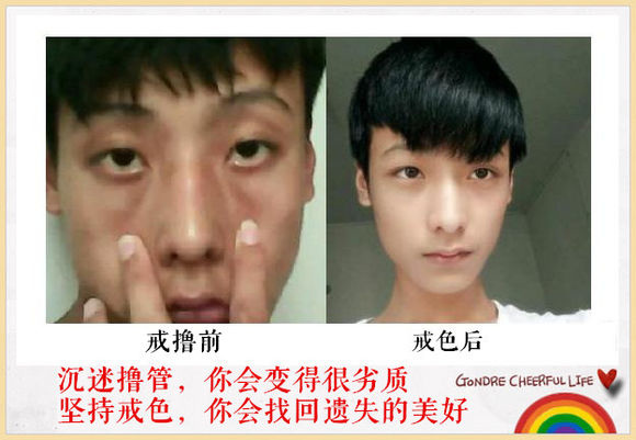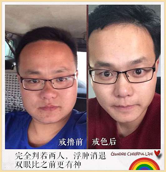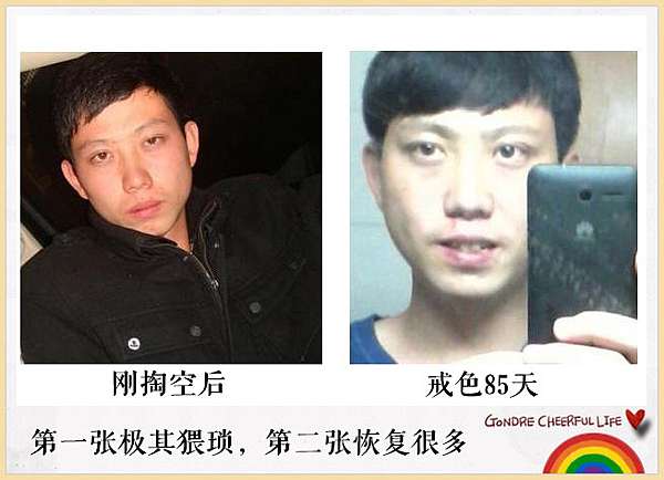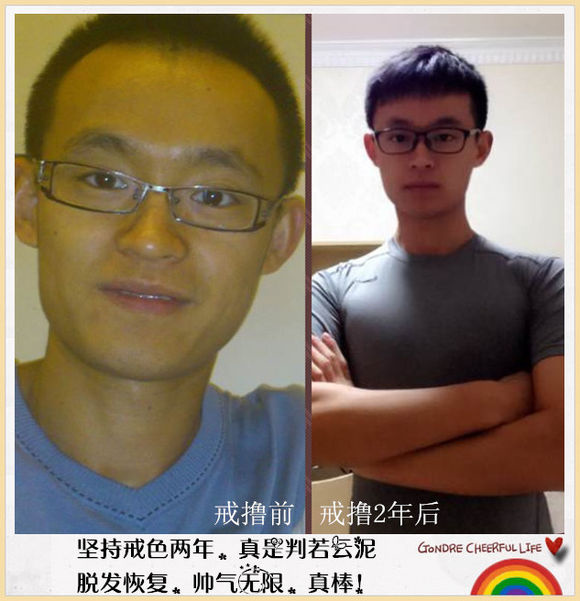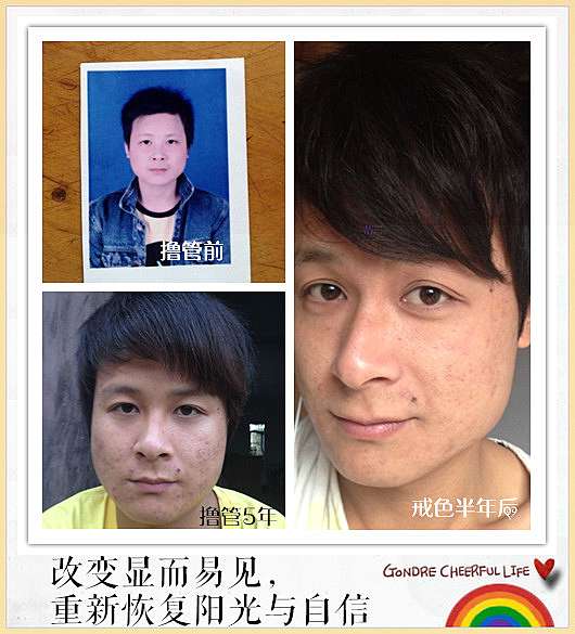 4.臉型:傷精到一定程度,臉龐容易變形,以浮腫、變寬變大和松弛下垂等表現為主,凹陷也多見。戒色後臉龐會重新收緊,五官會變得精致有型。