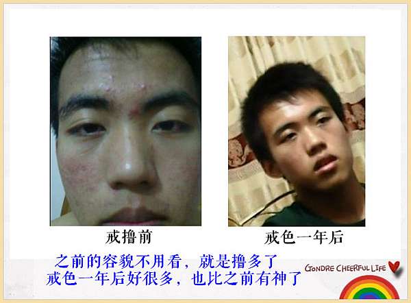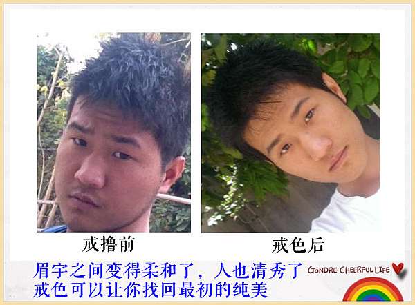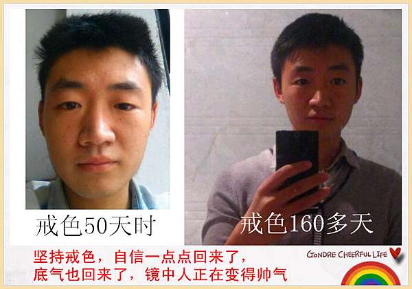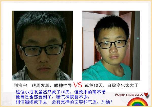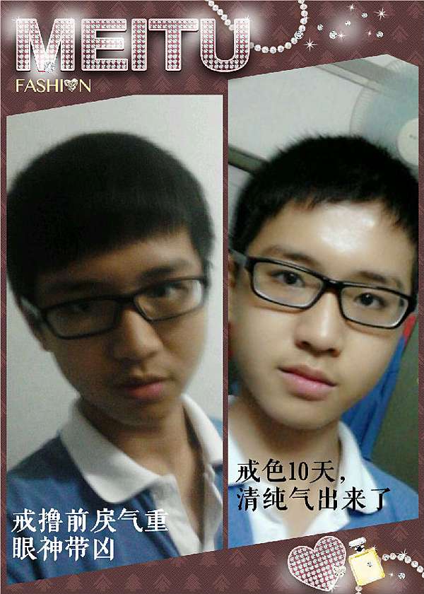 7.氣質:很多沉迷手淫的人,他們的氣質是極其猥瑣的,令人厭惡,堅持戒色後,氣質完全就變了,看上去很純正很舒服。