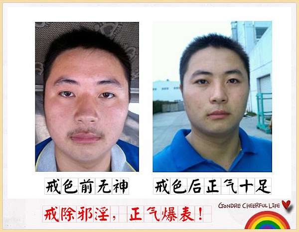 1.眼神:邪淫者的眼神多帶邪氣、凶氣、戾氣,戒色之後就會改善很多,眼神會變得善良而柔和,眼形也會產生好的變化,自然睜到位。
