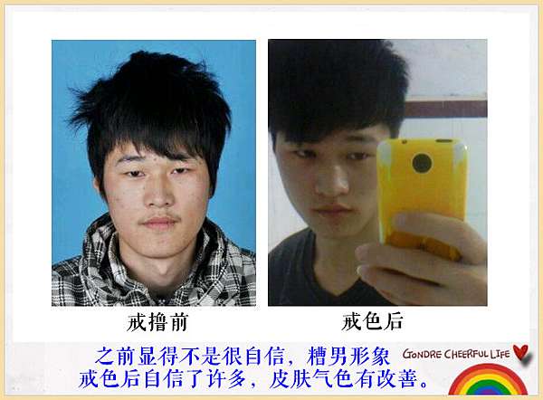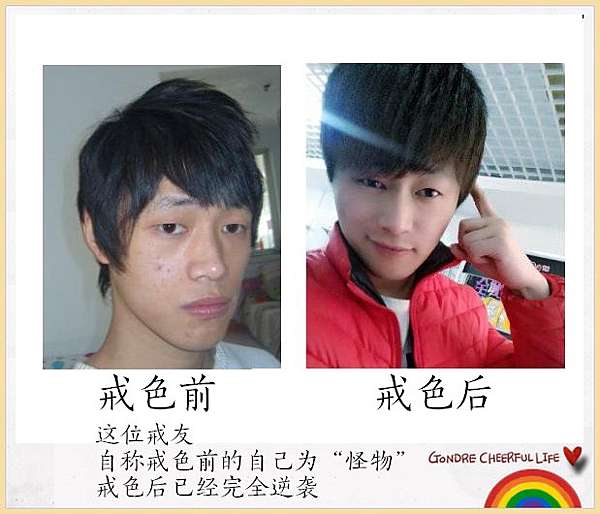 2.皮膚:出油多、痘痘多、觸感粗糙等膚質差的問題,在戒色之後都會改善很多。皮膚變好了之後,整個人就會帥很多。