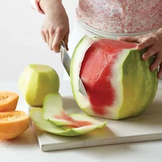 将西瓜切去绿皮部分