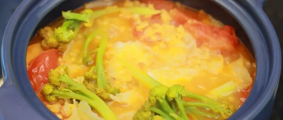 2. 加酵素养酱油30ml、番茄酱100ml和小红扁豆一小碗,砂锅中加满水,把西兰花和卷心菜一起放进去煮;