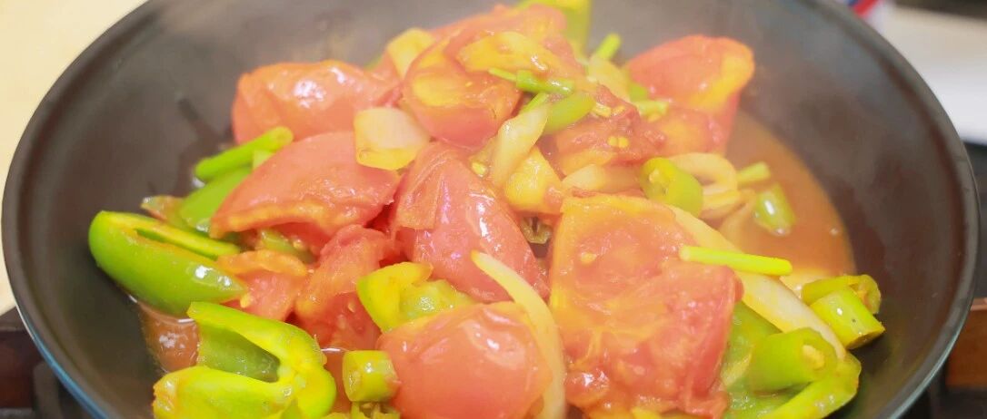 1. 锅中加酵素养油,放入洋葱爆香,加番茄和青椒煸炒;