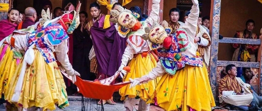 藏传佛教中的金刚舞,是以舞蹈的形式来表达佛法的甚深密意,一般是由高僧大德传承教导,由寺庙的僧人进行表演。金刚舞是藏传佛教的特殊传统,也是藏传佛教寺院里年初法会的重要活动之一。金刚舞对很多人来说非常神秘,其实金刚舞是甚深大法,信徒都相信它有“见即解脱”的功德,只有有缘亲眼所见,就代表福德具足、障碍减轻,既能增益本尊法“生起次第”的修持,更能在未来种下解脱的善种子。金刚舞据说是莲花大师流传下来的一个修法。金刚舞刚传至西藏时,最开始是一传一、隐密的传授。金刚舞在藏地流传开来,是伏藏师策旺仁波切传承,才渐渐在藏地普及公开。金刚神舞的形式很多,有供养佛菩萨的舞;有地舞,是建立殿堂佛像时为镇地而舞,其中主要有密集金刚、大威德金刚、胜乐金刚、时轮金刚法门神舞等;有米拉日巴的金刚帐舞,以及表现法王、吉祥天母与眷属、马头明王、各种护法神等为主的多种形式的神舞。金刚舞不仅仅是一种舞蹈,也是一种密乘修法,其行者要配合观想和禅修进行,不管金刚舞修持的是哪位本尊或护法,都包含“息、增、怀、诛”四种事业。❖息业,即息灭自己或者他人的疾病、魔障、罪业等违缘。比如大家熟悉的金刚萨埵法门就是息业,通过念修金刚萨埵本尊,可以清净自己无始以来所造的一切罪业。❖增业,即增上名声、财富、地位、智慧等。增业的修法有很多,如果想增上智慧,可以修文殊法;如果想增上慈悲,可以修观音法;如果想增上财富,可以修财神法……❖怀业,即首先令自心获得自在,之后怀柔一切人和非人。有些人不管到哪里都不顺,在家父母亲友反对自己,或有人经常侵扰折腾,或者与上司同事经常产生各种矛盾等等。❖诛业,即大悲妙力已究竟圆满、无有任何自私自利心时,依靠马头明王、金刚橛等忿怒本尊修法,将野蛮众生的心识强行超度到净土。表面上看,好像诛业和杀生是一样的,实际上二者截然不同,前者是度化众生的殊胜方便,后者是损害众生的恶行。藏传佛教在大型法会及特殊节庆之时,用歌舞的方式表达佛菩萨神变幻化度众生的方式。金刚舞可分为上师舞、本尊舞、空行舞、护法舞。如在藏历六月初十、莲师成道日所举行。寺庙僧众或修行者戴上莲师八变等等面具以及戏服,手拿不同的法器,纪念莲花生大士以不同的身相度化不同容器之众生。法师或修行者,扮演报身佛的寂静及忿怒等等形象,随之祈求报身佛降临在他们身上,配合大型法会之修法仪轨,以勇猛舞姿来摧毁、降伏妖魔鬼怪。又以无量的大慈大悲度化妖魔鬼怪,以及受着所知障、烦恼障、业力紧迫的六道一切有情众生。在坛城前,以年轻、庄严、声音嘹亮的喇嘛来扮演空行母。他们以歌声、舞蹈及手印、法药,来赞叹十方所有诸佛菩萨的事业及功德,祈求所有在净土的勇父、空行赐予所有修行者所有共与不共的成就。喇嘛们扮演阎罗王或天龙八部等,透过金刚舞不同的变化,表达因果业力真实不虚,及山川江河都有神祇存在,对于因果业力及大自然都要心存敬畏;同时,也祈愿得到真实护法神的庇佑,祈求国泰民安,佛法广传。金刚舞要求非常严格,一招一式不能做丝毫改变,因为,每一个手势都代表不同的含义。手势的变换,表达了舞者对空性的感悟和理解。因此,当行者跳金刚舞,可以藉由自身的修持与参加法会的加持,获得本尊加持,并在来生得以到达本尊的境界。观者通过看金刚舞修持,可逐渐去除修行上的逆缘、累积顺缘,乃至渐次成佛。