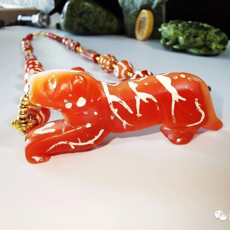 26、南亚出土高古蚀花猛虎项链 尺寸:2.6X7.0X1.1厘米