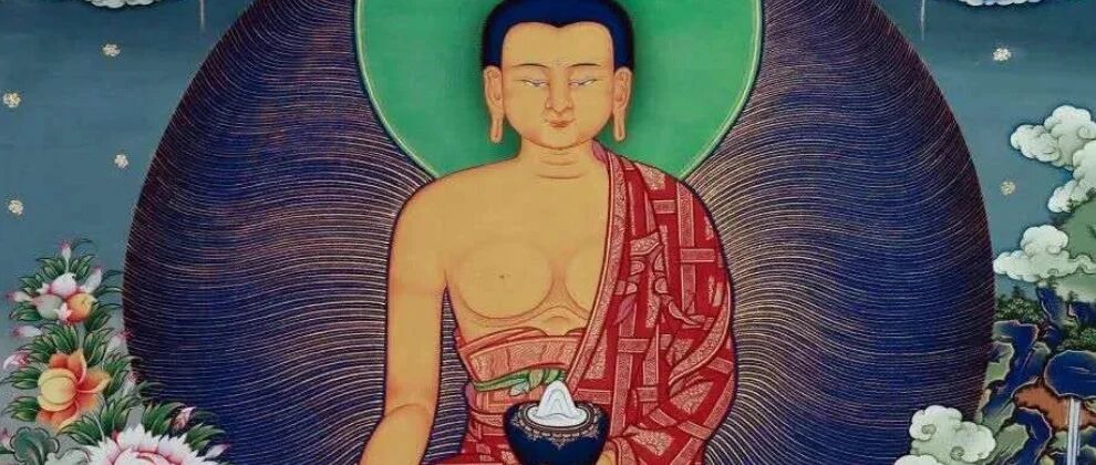 尔时世尊,从肉髻中,涌百宝光,光中涌出,