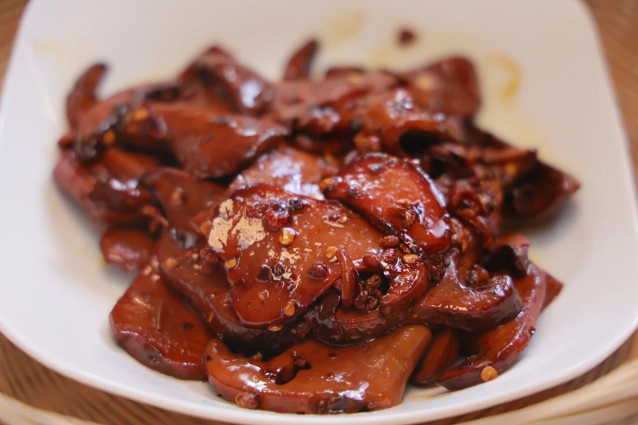 1. 牛肝菌去根洗净,切片,起油锅煎至两面金黄;