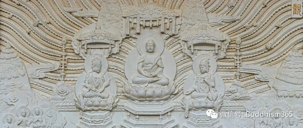 尔时,世尊欣然微笑——诸佛法尔,若微笑时,面门即放诸大光明,青、黄、赤、白、紫、颇梨色,遍照无量无边世界,上至阿迦尼吒,还归佛所,右绕三匝,从佛顶入。
