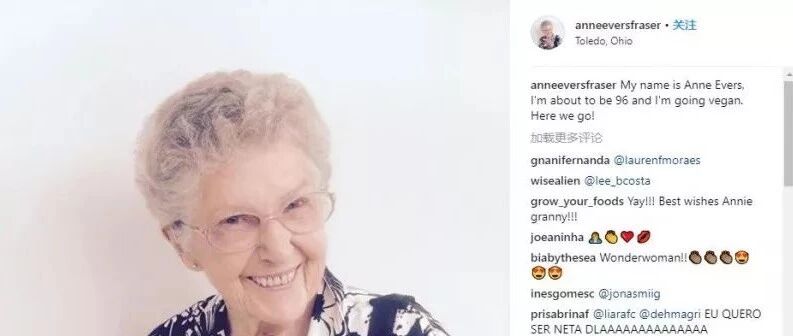 “我叫安妮·艾文斯,我马上就要96岁了!从现在开始,我要成为一个素食者。”