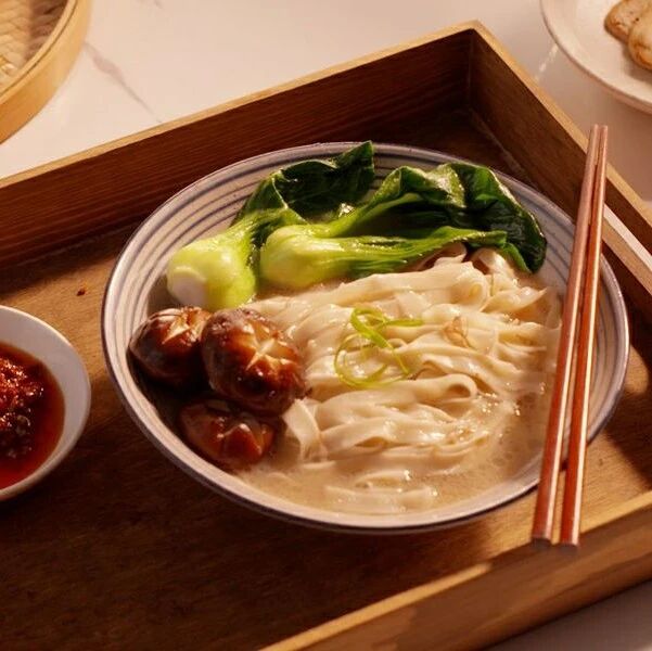 材 料: 蟹味菇50克,面条80克,蔬果粉少许,生抽1勺,白醋半勺,芝麻油1勺,香菜少许 做 法: 1、蟹味菇洗净备用 2、调制调味汁:生抽1勺+芝麻油1勺+白醋半勺+蔬果粉少许 3、水开,加蟹味菇,煮沸加面条 4、再煮沸,焖2分钟即可 5、捞起汤面,淋上调味汁,加香菜即可