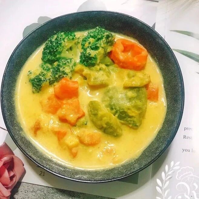 6. 最后放入西兰花略煮下,起锅前加入盐、黑胡椒粉和鲜蔬粉调味即可