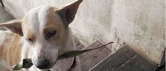 那狗看见了,立即跑过来,一阵号叫,见男主人没有反应,急忙下水衔住他的衣服,把他拖到岸上,然后跑回家用头撞门。