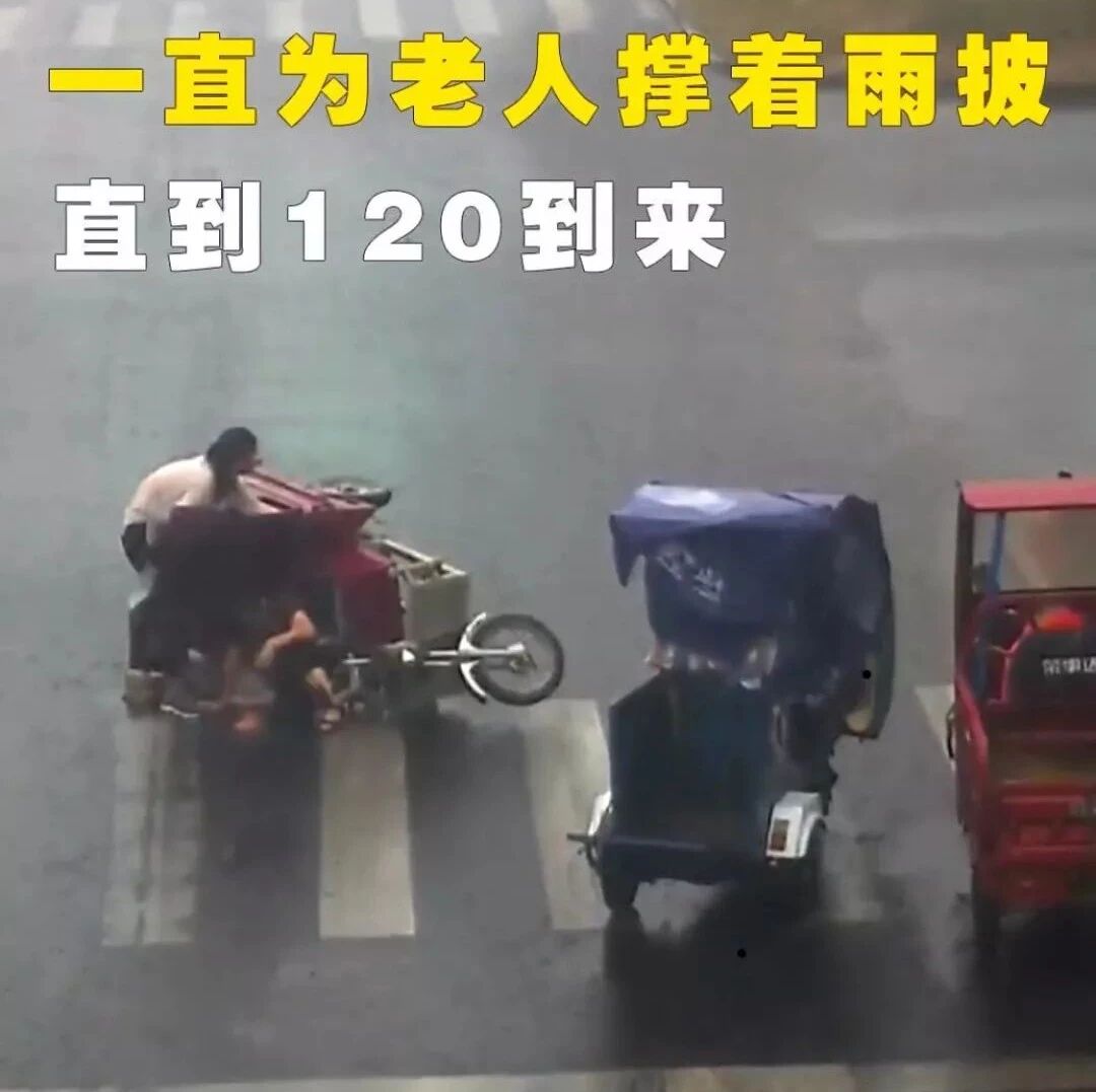 冒雨守护老人