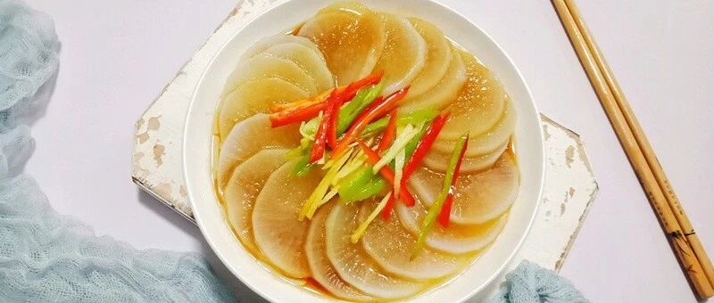 1. 白萝卜去二头,洗净去皮,切薄片,放入清水过锅一下,过冷水沥干放凉;
