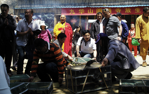2012年农历四月初八,九华山圆通寺放生法会圆满,来自全国各地的信众和放生代表参加了法会。