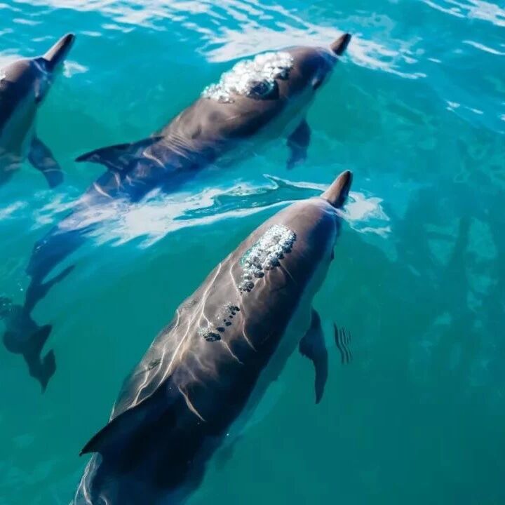 2004年,四个救生员在新西兰海边游泳时,一群海豚在海里围住了他们。