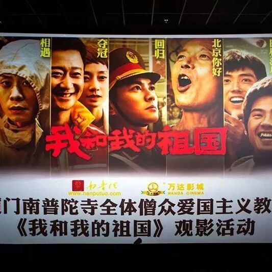 2019年10月22日,南普陀寺组织全体常住僧众观看电影《我和我的祖国》,在方丈则悟大和尚的指导下、由客堂师父带队,是日晚六时,僧众威仪齐整、列队排班,步行前往影院观影。