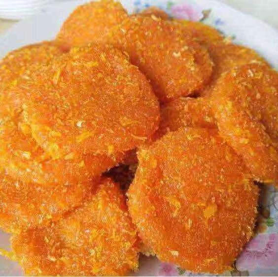 步骤2:将蒸好的南瓜放盆里压成泥状,加入白糖拌匀,将糯米粉放入碗中和南瓜泥搅拌后揉至黄色。