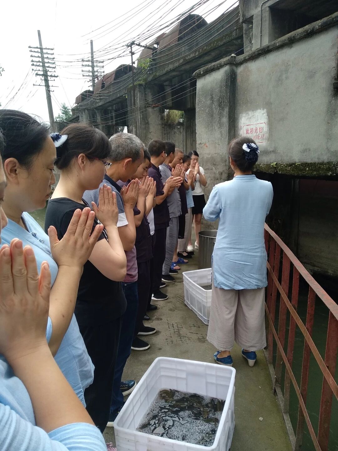 5月26日中午,结束了忙碌的午餐接待工作后,餐厅家人们的又一次放生活动即将开始,上天也好像被感动了一样格外地配合,回报给我们了一个好的天气,前十多分钟还在下着的暴雨骤然而停,促成了这一次的放生活动得以顺利进行。