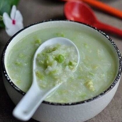 煮到萝卜变得透明温润的样子,可以夹起一块尝一下,是软烂不是脆硬的就好,大米也软烂后,放入毛豆、一点盐,一起再煮5分钟就可以了